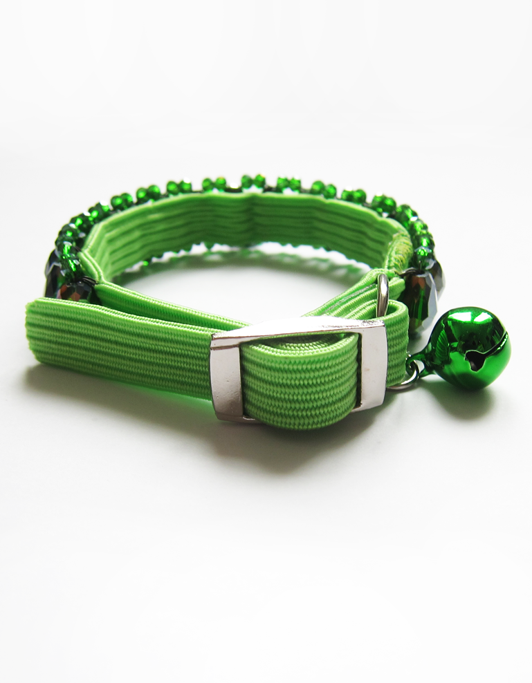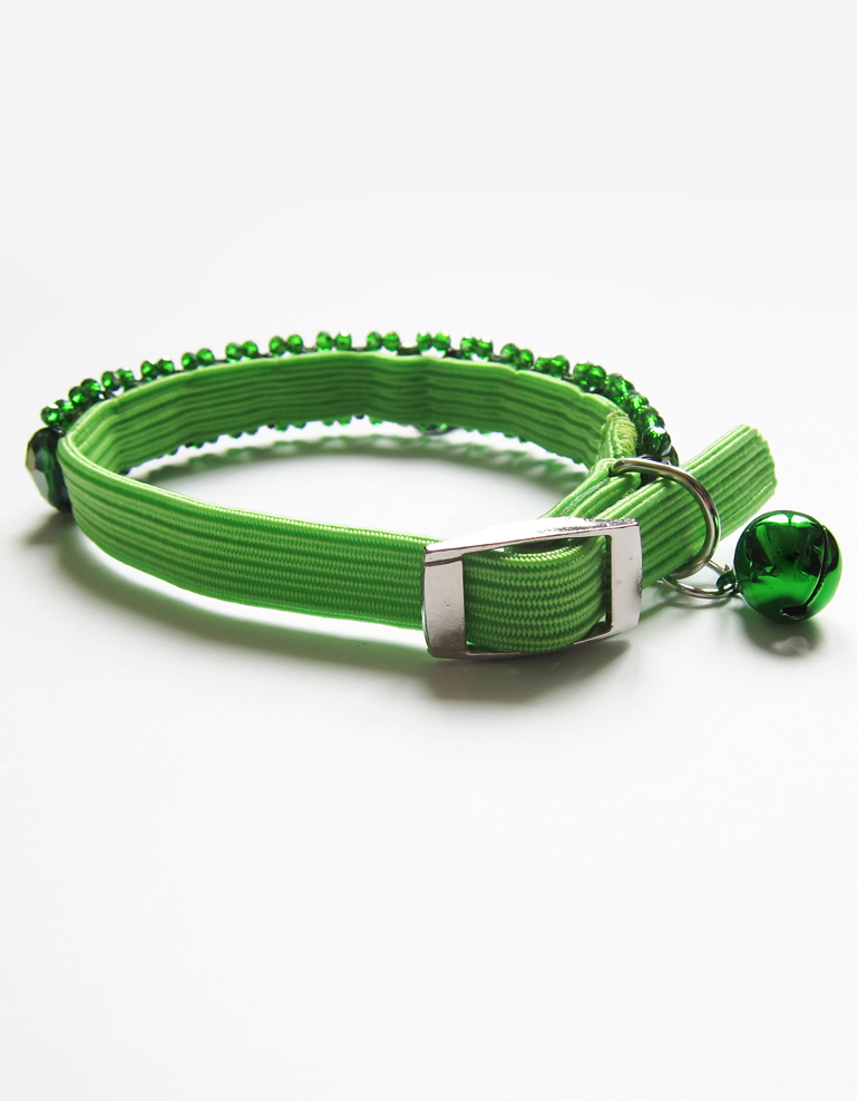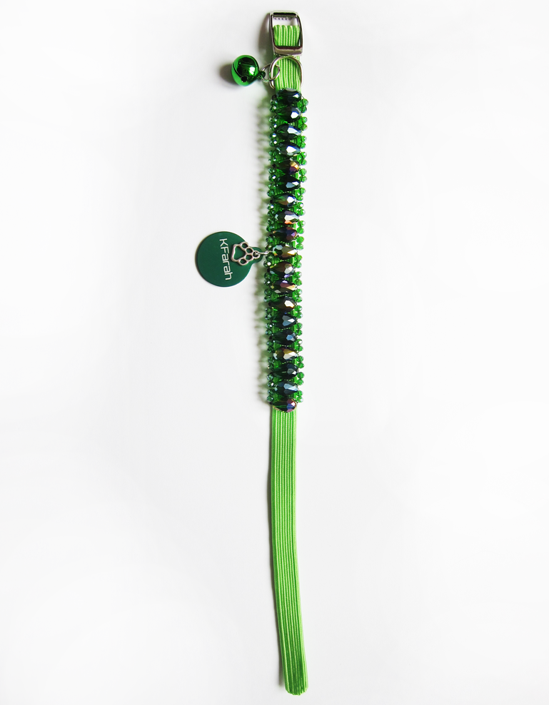 Caractéristiques du produit : Longueur : 32 cm Largeur : 1 cm Matière : Élastique souple + perles en cristal de roche Couleur : Cristaux vert à reflets / Élastique vert Design : Chic, élégant, adapté aux chats de toutes tailles