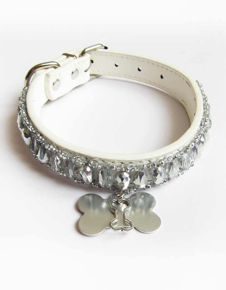 Chaque collier est délicatement orné de perles en cristal de roche, soigneusement incrustées pour offrir un rendu chic, élégant et raffiné. La sangle en simili cuir assure à la fois résistance et confort, tandis que la boucle métallique garantit un maintien sécurisé au quotidien. Les cristaux apportent une touche lumineuse et sophistiquée, faisant de ce collier un véritable accessoire de style pour votre chien.