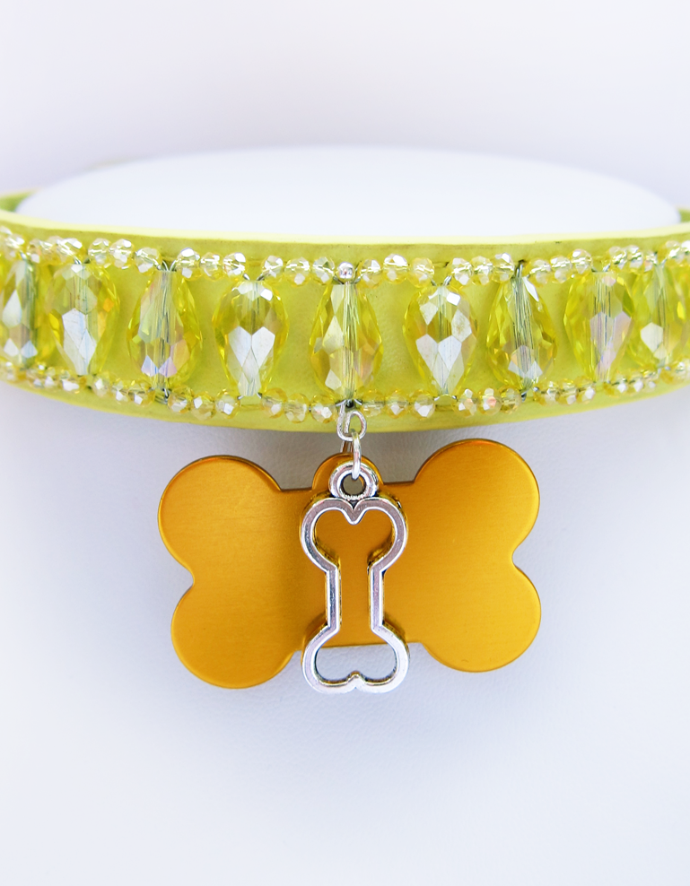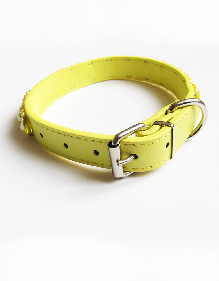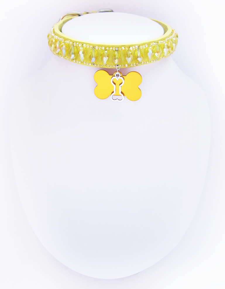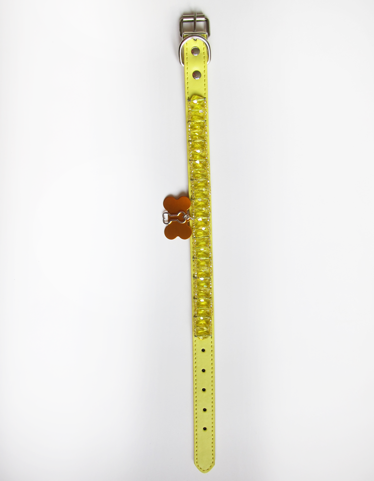 - Couleur : Simili cuir jaune / Cristaux jaune à reflets