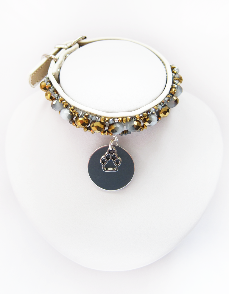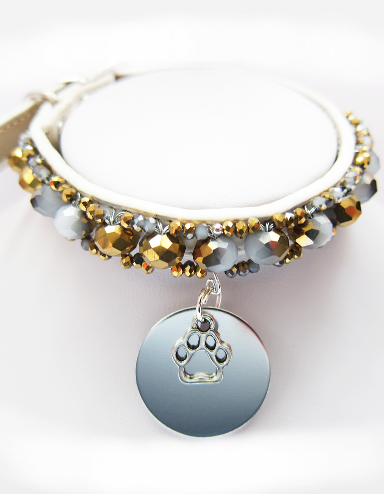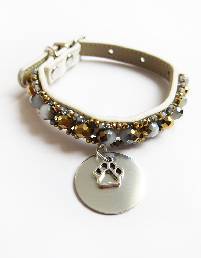 Merci d’indiquer la taille souhaitée, la couleur du collier et la couleur des perles via la page Contact lors de votre commande. Caractéristiques du produit : Taille S – Petit collier Longueur : 25 cm Largeur de la sangle : 1 cm Largeur de la boucle métallique : 1 cm Taille M – Collier moyen Longueur : 30 cm Largeur de la sangle : 1,2 cm Largeur de la boucle métallique : 1,5 cm