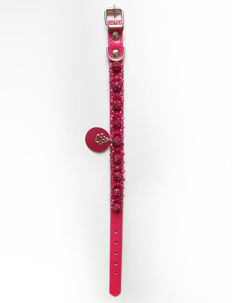 Caractéristiques du produit : Longueur : 30 cm Largeur de la sangle : 1,2 cm Largeur de la boucle métallique : 1,5 cm Matière : Simili cuir Couleur du collier : Fuchsia Couleur des perles : Fuchsia à reflets Design : Chic, épuré, spécialement adapté aux chiots