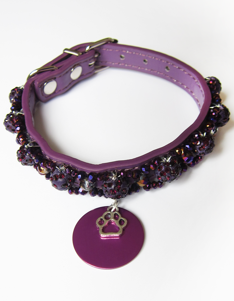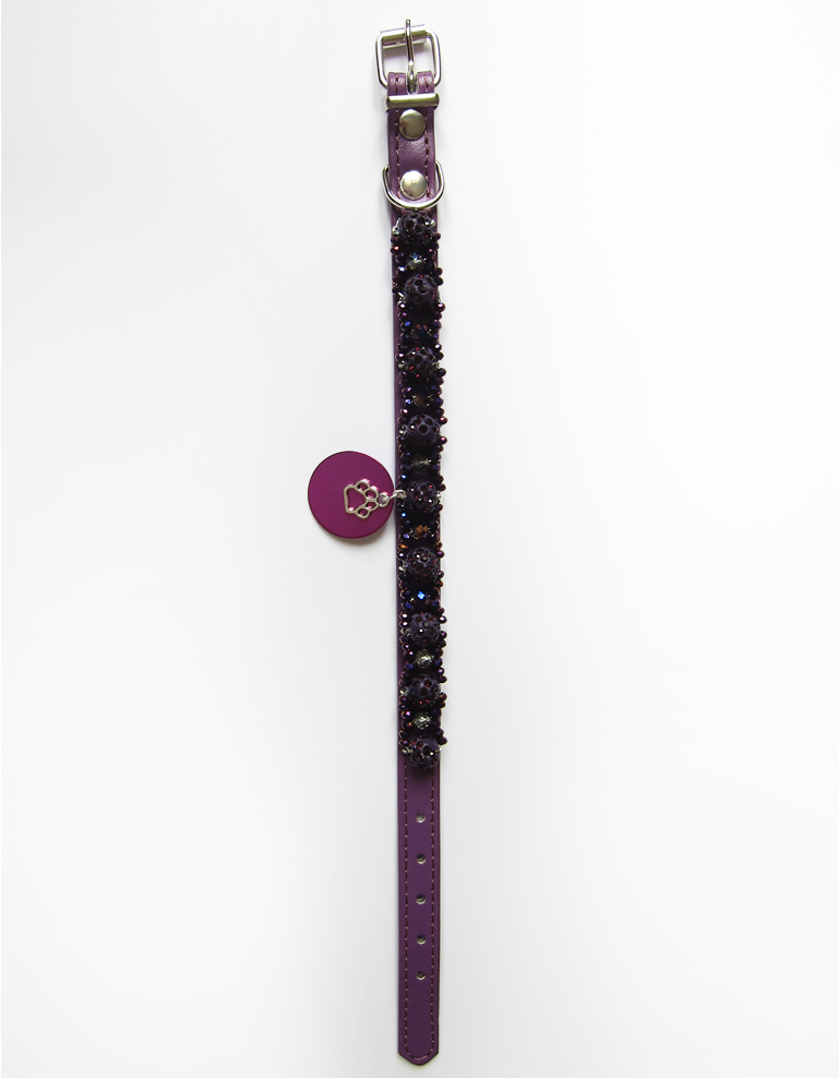 Caractéristiques du produit : Longueur : 30 cm Largeur de la sangle : 1,2 cm Largeur de la boucle métallique : 1,5 cm Matière : Simili cuir Couleur du collier : Violet Couleur des perles : Violet à reflets Design : Chic, épuré, spécialement adapté aux chiots