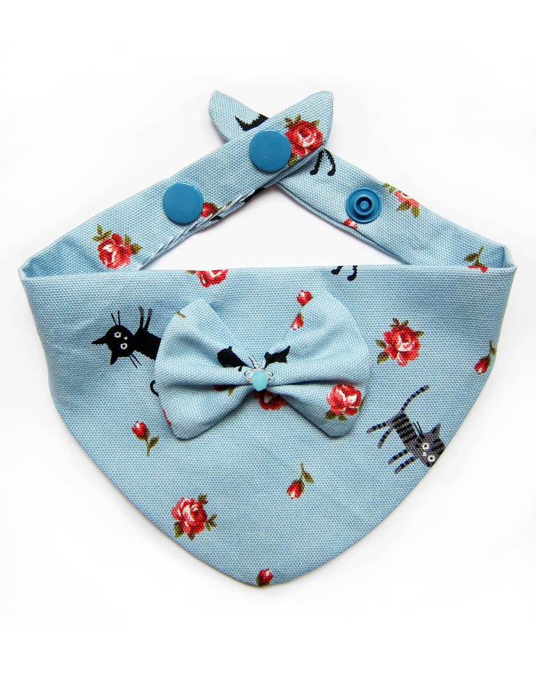 Foulards à pressions pour chats & chiots – Bleu Roses